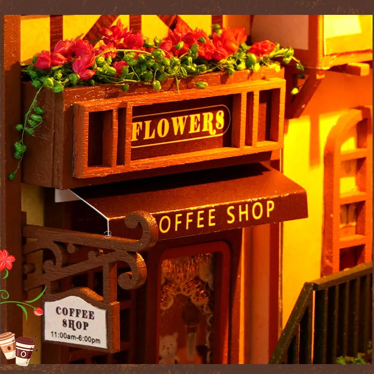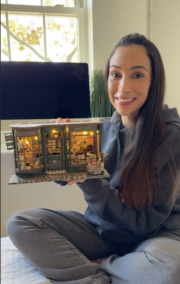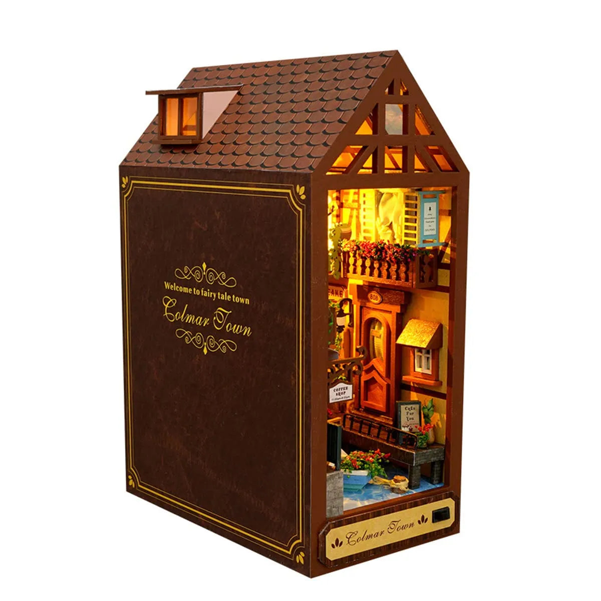 Built-in LED lights illuminate the peaceful town at night adding a touch of warmth and magic to your reading space.