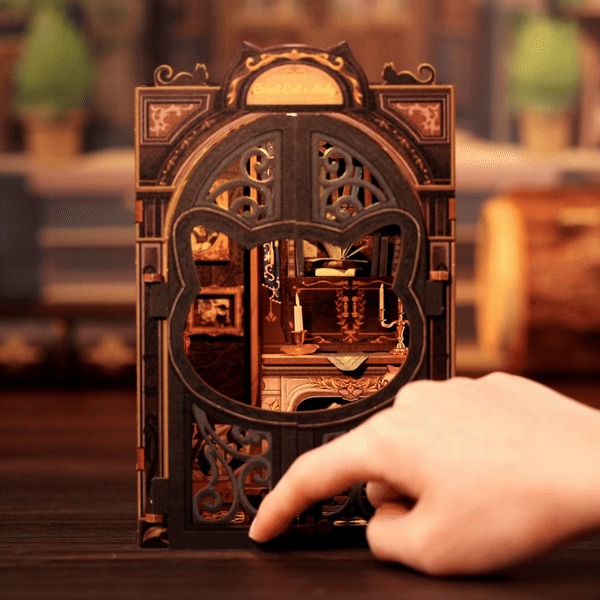 Add sophistication to any bookshelf or give a meaningful gift. The Count Cat’s Study DIY Book Nook Kit makes a unique present for craft lovers bookends collectors or anyone who enjoys the charm of intricate miniatures and cozy spaces.